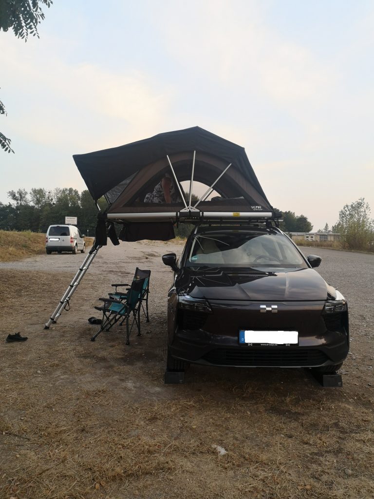 - Wir haben ein Dachzelt auf dem Auto, für einen Kurzurlaub über das Wochenende.